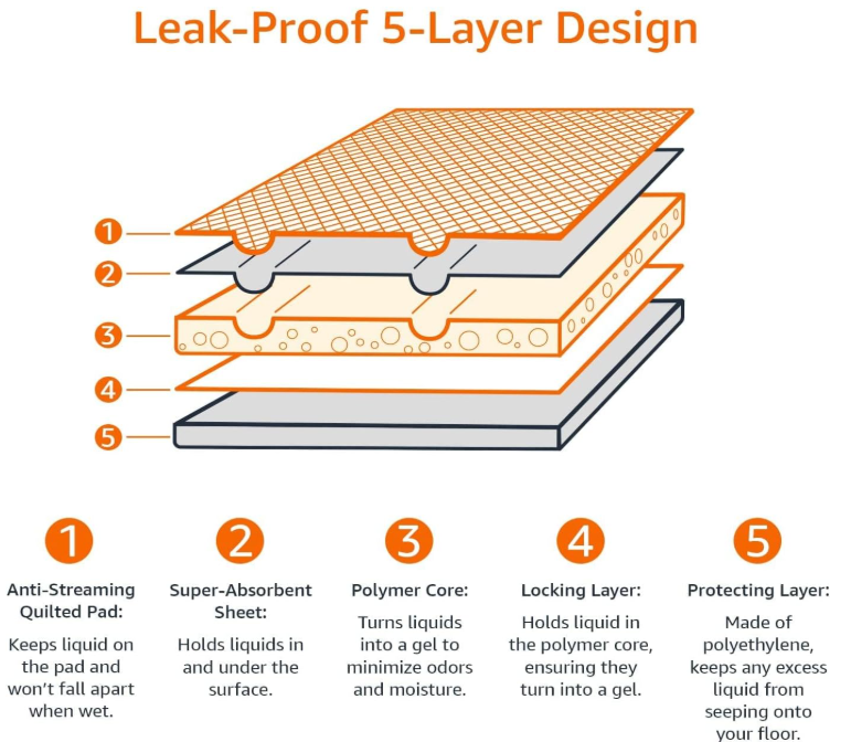 Basics Dog & Puppy Pee Pads – 5-Layer Leak-Proof Training Pads (100 Count)