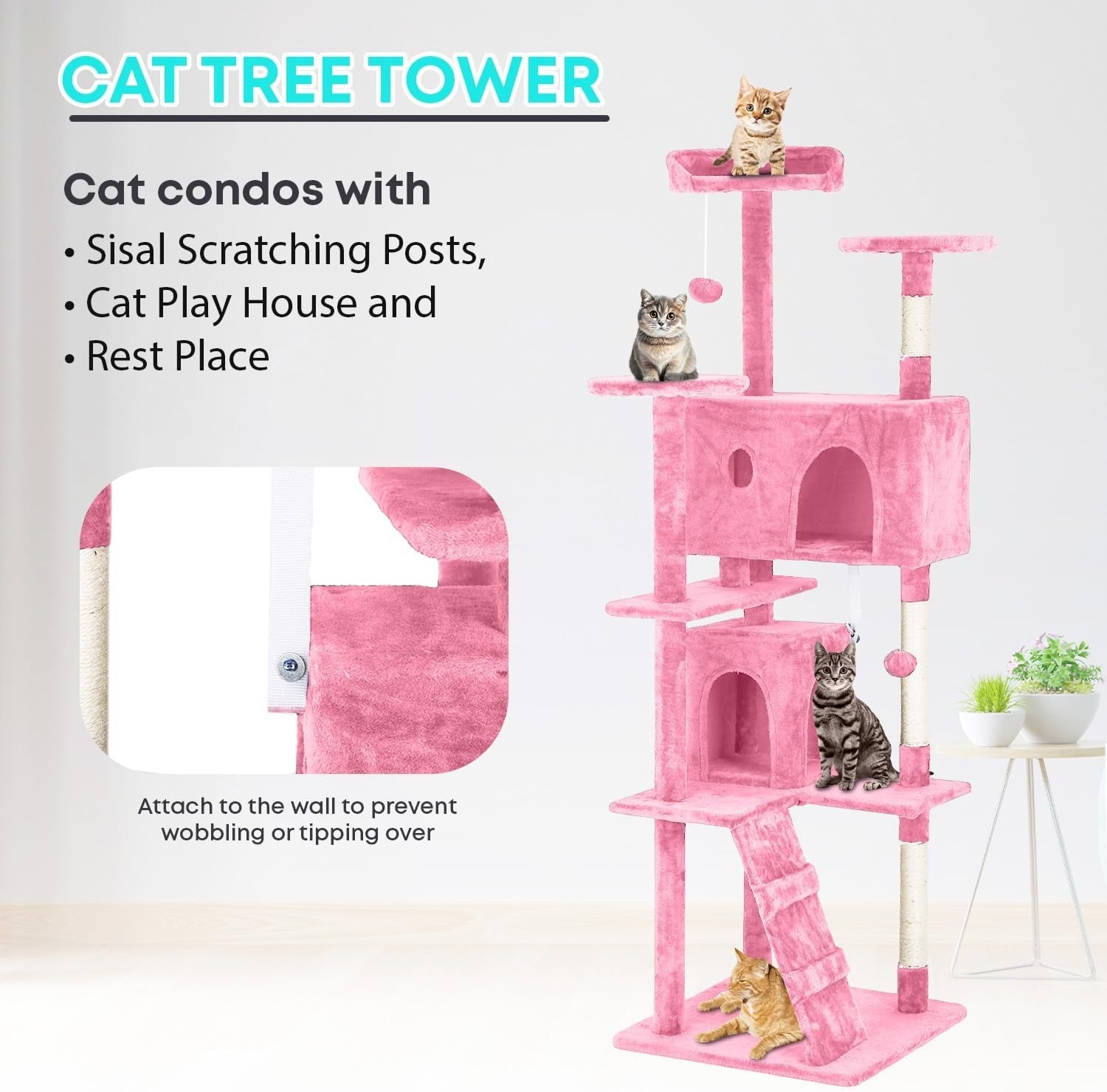 Give your cat the perfect space to play, scratch, and relax with our 54-inch multi-level cat tree. Designed for indoor cats, this sturdy cat tower features cozy condos for hiding, soft perches for lounging, and durable sisal scratching posts to protect your furniture. The plush platforms let your cat climb, jump, and survey their space, keeping them active and entertained all day. Easy to assemble and built to last, this modern cat condo fits seamlessly into any home while giving your furry friend endless comfort and fun. A must-have cat playhouse for happy, healthy indoor cats.